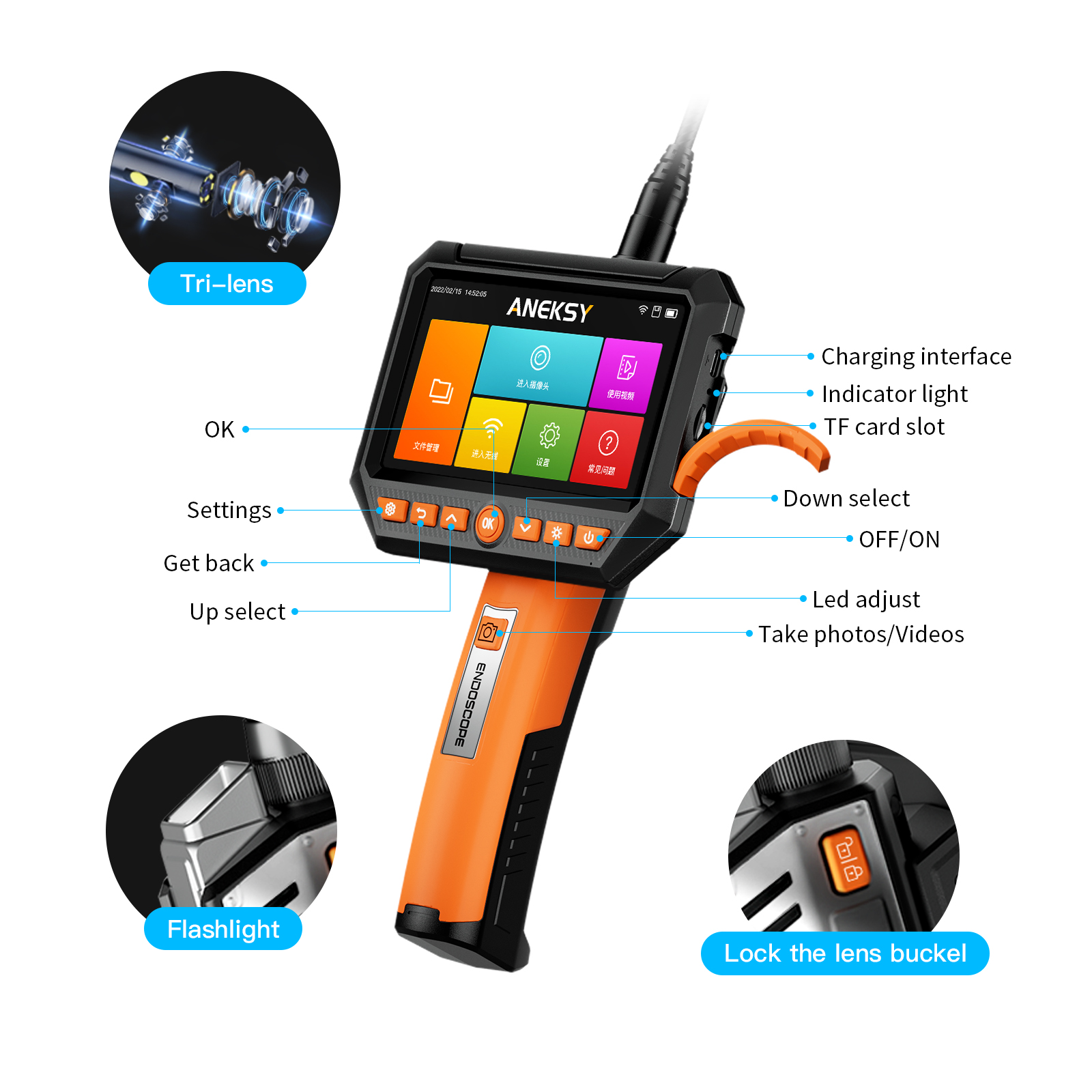 5. Equipped with a high-quality 1/3/5m snake tube and 10m hard cable, with high-quality lenses, the lens will not fall off.